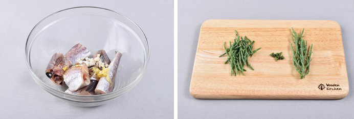 양념 : 간편어간장 15g, 함초소금 1g, 생강청 15g, 흰 후추 1g, 청주 15g, 레몬즙 5g, 다진 마늘 15g, 연겨자 7g, 통깨 10g