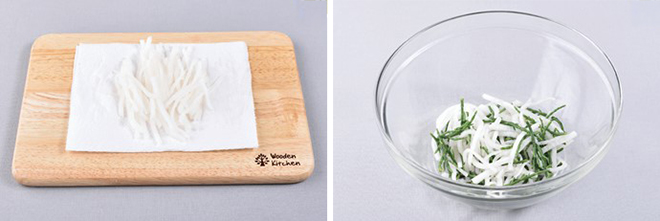 ③ 무는 소금에 살짝 절여서 수분과 염분을 제거한다.