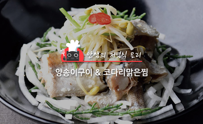 오늘 소개하는 양송이 구이는 청양고추와 마늘을 사용해 특유의 맛과 향을 냈고, 양송이버섯 특유의 감칠맛으로 나트륨 사용을 줄였습니다. 코다리 맑은찜은 소스를 만들 때 레몬즙을 이용해 상큼한 맛으로 짠맛을 대체하여 나트륨을 줄였습니다.