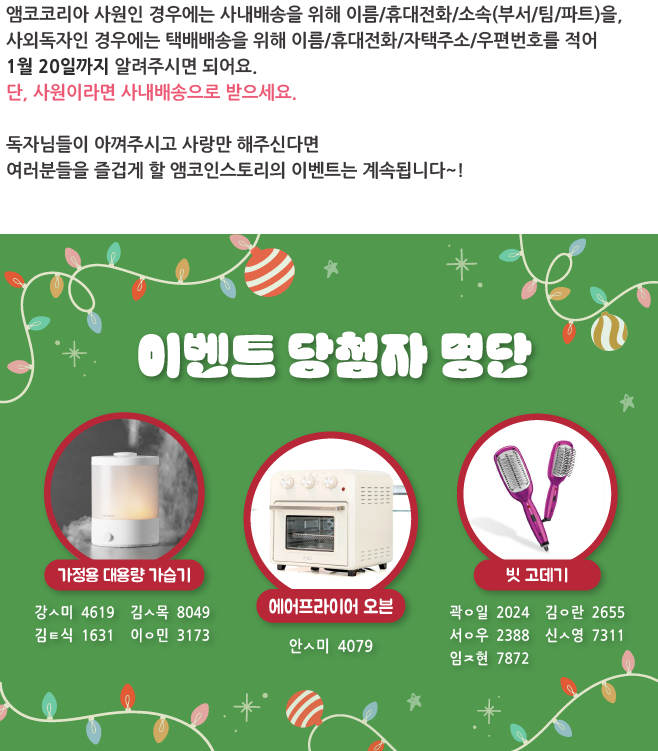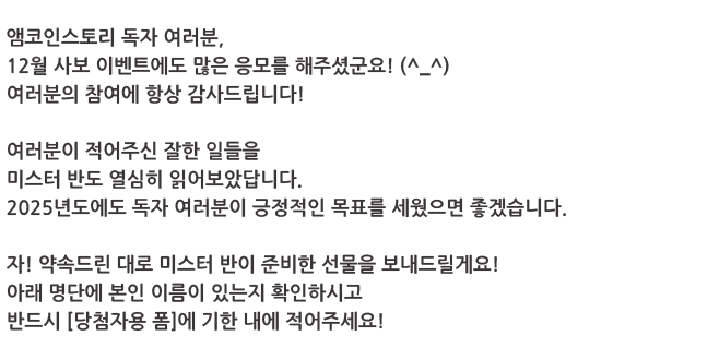 | 을사년 새해맞이 2행시 이벤트 결과 발표 _ 웹진 [앰코인스토리] (0) | 2025.01.24 |