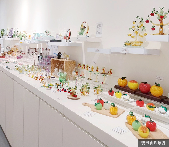 전시회를 나가는 곳에는 역시나 유리 조형물 기념품점이 있어서 소비자를 한껏 유혹합니다. 특히, 대만의 전통문화를 이용한 제품들이 있어 구매욕구를 매우 자극하는군요.