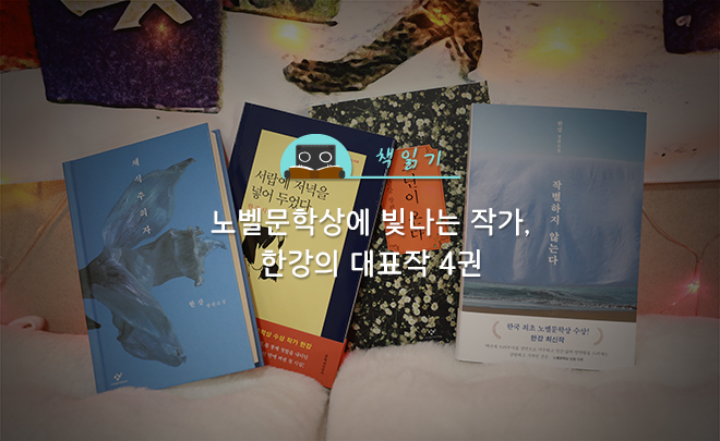 많은 분이 노벨문학상을 원어로 읽을 수 있다며 좋아하시는 요즘입니다. 노벨문학상은 특정한 작품이 아니라, 자신만의 작품 세계를 구축한 작가에게 주는 상이지요. 그래서 한강 작가의 여러 작품을 통해서 작가가 추구하는 세계를 다채롭게 들여다볼까 합니다.