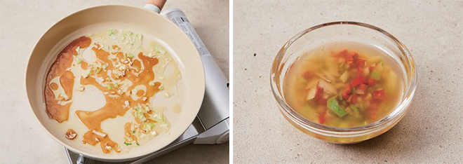 ④ 소스를 식힌 뒤 잘게 썬 고추를 섞는다.