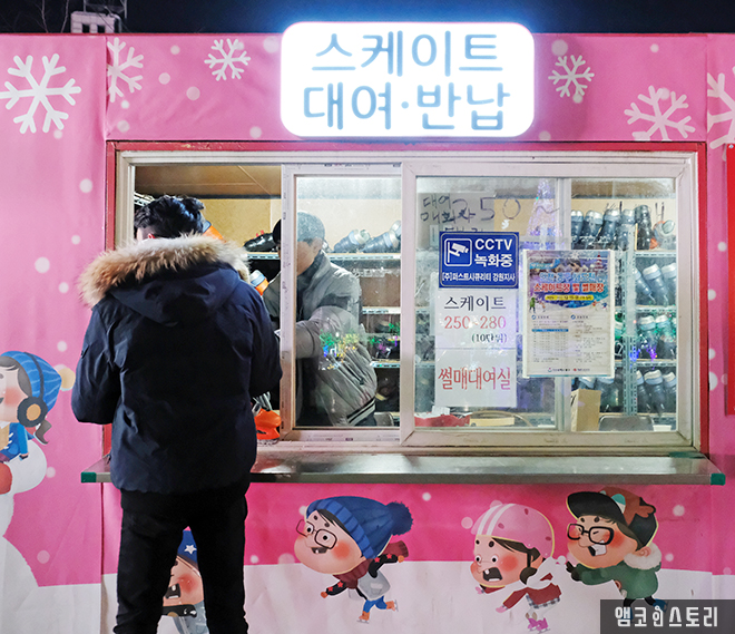 여기서 잠깐! 몰려드는 인파로 복잡한 현장에서 기다림 없는 패스트 패스의 꿀팁을 알려드려요. 바로 네이버 예약을 이용하는 거예요. 이용일 최소 하루 전 예매는 필수로, 회차별로 티켓 구매가 가능하며 이용료 2,000원에 기본장비(헬멧과 보호대)가 포함되어 있어요. 장갑은 개별 지참으로 미착용 시 입장이 불가하니 유의해야 해요. 물론, 현장 구매도 가능하답니다. 그 외 얼음 썰매(2,000원)와 스케이트 강습(40,000원)도 해당 사이트를 통해 예매할 수 있어요. 초보의 경우 보조 기구 사용도 추천해요.