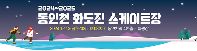도심 속 낭만을 누비기 위해 동인천역 북광장에 마련된 화도진 스케이트장을 찾습니다. 이미 알만한 사람은 다 아는 겨울철 인천 명소, 화도진 스케이트장은 지난해 6년 만에 재개장하였어요. 올해도 어김없이 12월 13일 화려한 개장을 알려왔는데요, 오는 2025년 2월 8일까지 58일간 운영될 예정이라고 합니다.