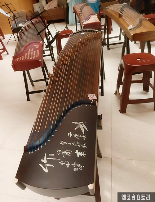 올해 주요 행사로 고쟁(古筝)을 연주하는 분들이 초빙되었습니다. 고쟁은 2,500년의 이상의 역사를 가진 중국 전통 현악기입니다. 우아한 음색과 다채로운 표현력 때문에 동아시아 전통음악에서 널리 사용된다고 합니다. 우리나라의 가야금이나 거문고와 비슷한 구조입니다. 긴 나무 몸체 위에 16~26현으로 구성되어 있으며, 현은 손으로 조율 가능합니다. 연주자는 손가락에 착용한 인조 손톱을 사용해 현을 뜯거나 밀어서 소리를 냅니다.