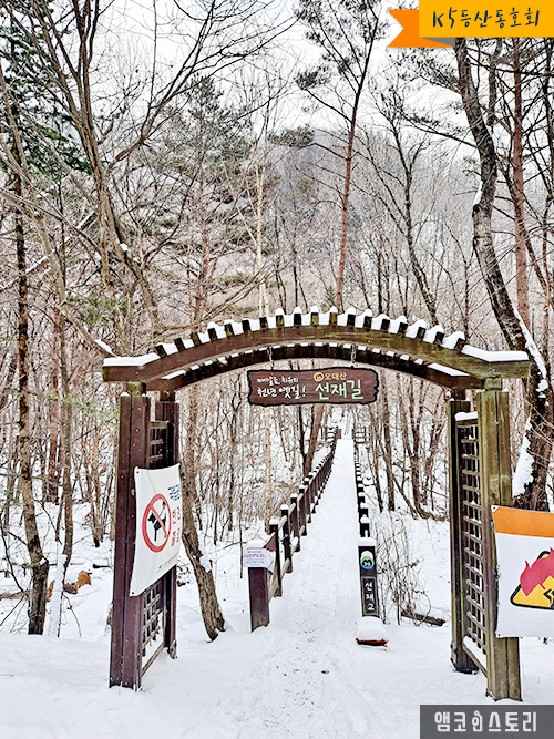 오늘의 여정은 오대산 선재길. 오대천 계곡을 따라 오대산 먹거리 마을부터 상원사까지 이르는 12km의 계곡 숲길 트레킹입니다. 대한민국 최고의 아름다운길로 선정된 오대산 전나무숲을 가로질러 가는 눈꽃 트레킹이지요. 사실 폭설보다는 눈이 없으면 어쩌나 하는 걱정이 앞섰던 일정이었습니다.