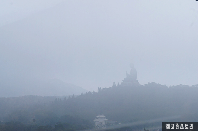 오른쪽 산 위에 거대한 청동불상이 보인다. 우와!