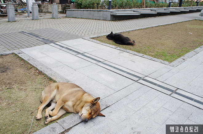 포린사 앞에는 장군상들이 있는데, 그 앞 잔디밭에는 견공들과 소들이 있다. 이 무슨 평화로운 광경이란 말인가.
