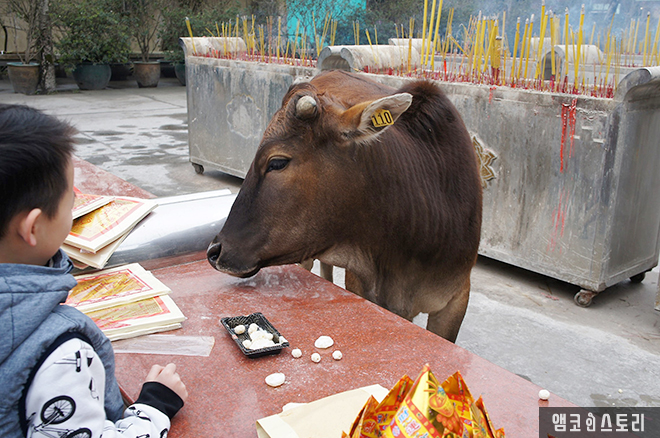 소가 돌아다녀서 깜작 놀랐는데, 너무 온순하다. 제사보다 젯밥에 관심이 많은 녀석이다.