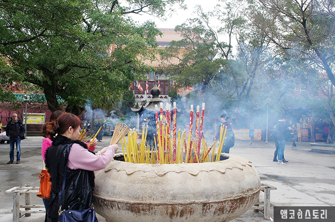 포린사 앞에는 수많은 불자들이 각자 소원을 비는 향을 피우고 있는데, 향의 종류와 크기가 다양하다.