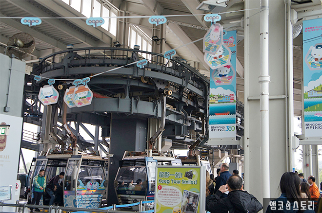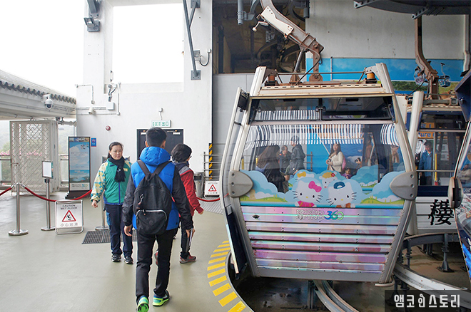불상 구경을 마치고 다시 케이블카를 타러 가는데, 헬로키티 포토존이 있다. 헬로키티와 옹핑은 어떤 관계가 있는 걸까. 케이블카에도 헬로키티가 있다.