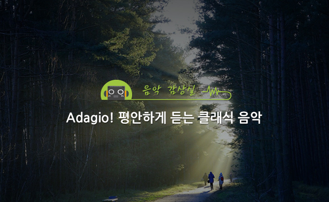 아다지오(Adagio)는 이탈리아어로 ‘천천히 걷다’라는 의미를 가지고 있습니다. 음악용어로는 ‘느리게 또는 침착하게 연주하라’는 뜻입니다. 즉, 걸음을 걷는 것과 같은 속도와 호흡으로 연주를 하라는 것이지요.