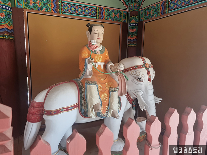 해마다 가을이 되면 상사화로 유명한 천년고찰 영광 불갑사. 백제 침류왕 원년 인도 간다라 출신 고승 마라난타 존자가 불법을 전하고자 우리나라에 들어온 불교 도래지로, 기존 우리나라 사찰과 달리 간다라 사원 양식인 탑원이 있다. 작은 공간에서 승려가 수행하는 공간이 있고, 코끼리를 타고 있는 동자승이 무척 이채롭다. 비록 겨울이라 상사화는 볼 수 없었지만, 주변 산세와 함께 평화로운 사찰풍경을 볼 수 있었다.