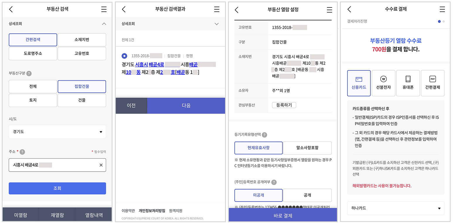 ⑧ 드디어 마무리 단계입니다. 700원만 결제하면 등기부 등본을 열람할 수 있습니다.