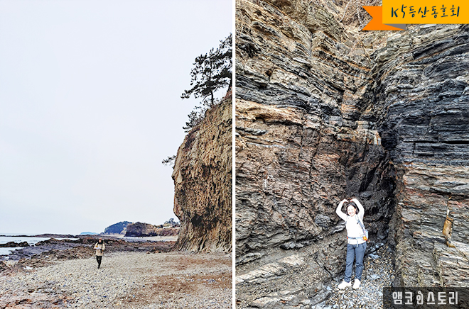 그래서 장소 섭외를 위해 한달 전부터 물때 시간을 조사하고 적벽강으로 트레킹이 가능한지를 분석하기도 했습니다. 원래 트레킹 코스에는 적벽강 위를 걷도록 되어있습니다. 물때가 맞지 않으면 바닷가로 내려 갈 수 없기 때문이지요. 다행히 이날은 사전조사를 해서 간조시간에 맞춰 왔기 때문에, 적벽강을 걸을 수 있는 행운을 누렸습니다.