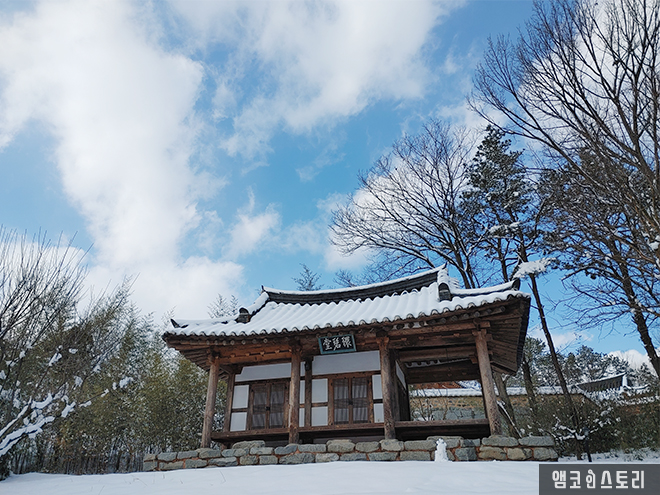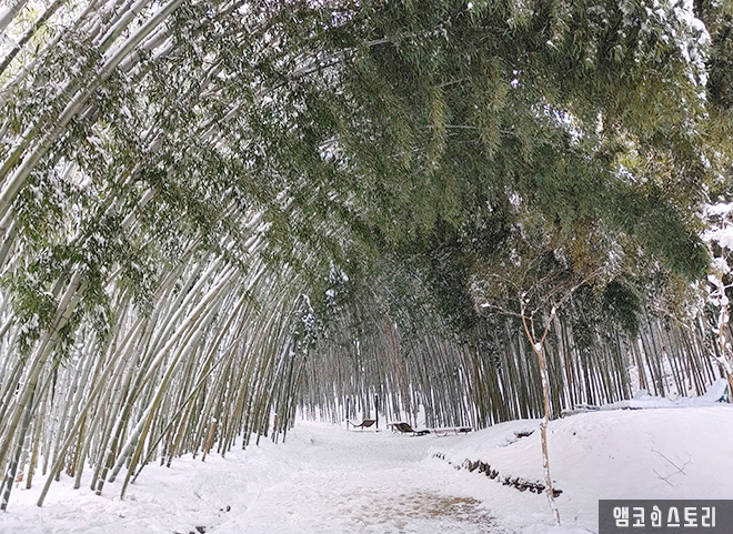 담양 죽녹원의 가사문학촌에는 눈꽃이 활짝 피어 설국의 아름다운 풍경을 자랑합니다. 눈 덮인 대나무숲과 원림의 정자를 거닐며 겨울의 차분함과 설경의 아름다움을 만끽해 봅니다.