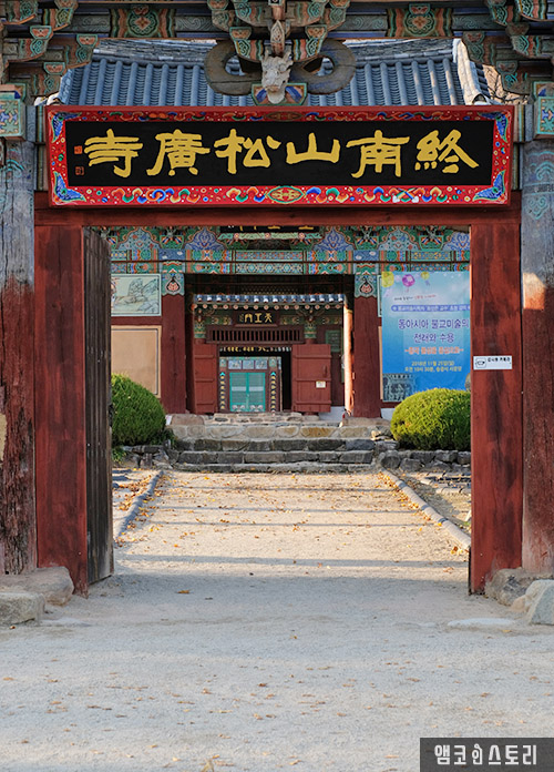 마지막으로 소개할 곳은 시간을 품은 천년고찰 ‘송광사’입니다. 종남산 아래에 자리한 사찰은 신라 시대에 도의선사가 창건한 것으로 전해지며, 옛 이름은 ‘백련사(白蓮寺)’입니다. 꼬리를 무는 잡념이 가시지 않거든 송광사를 가라고 합니다. 거기서 하룻밤 머무는 것은 의무충의 갑옷을 벗어 던지는 것이니 격투담화를 내려놓고 넉넉한 생활한복을 걸쳐보라 했지요. ‘終南山松廣寺(종남산송광사)’라고 쓴 편액이 걸린 입구를 지나 일주문에서 금강문을 거쳐 사천왕문에 이르기까지 한 일자(一字)자 길을 바르게 걷습니다. 그 걸음의 끝에는 일심으로 단정하게 자리한 대웅전이 있어요. 벽과 천장에는 천상무희를 그린 19세기 민화가 특유의 익살스러운 화풍을 자랑해요.
