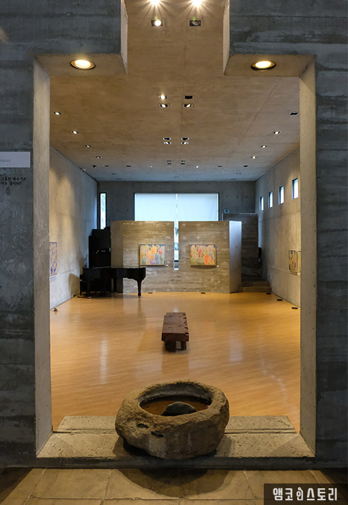 인근의 볼거리로는 오스 갤러리가 있어요. 회화와 조각, 음악, 건축 등 다양한 주제의 전시 및 문화 행사를 선보이는 이곳은 카페도 함께 운영하는 복합문화공간이에요. 소양면의 호숫가를 곁에 두고 넓게 펼쳐진 잔디 위에 덩그러니 자리한 건물은 상반된 건축 양식의 공존이 흥미롭습니다. 우선 갤러리는 모노톤의 색감과 현대적 스타일 건축이 눈에 띄어요. 반면, 붉은색 벽돌로 고풍스러움을 풍기는 카페는 테라스에서 바라보는 광활한 호수 뷰가 일품이에요. 자연을 벗 삼은 차 한 잔의 여유에 시간이 멈춘 날것의 평온함을 누려봅니다.