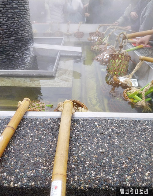 뭐니뭐니 해도 청수지열공원의 하이라이트는 지열 온천을 활용한 요리 체험입니다. 우리의 찜질방 달걀 느낌과 비슷한데요, 달걀과 옥수수 등을 직접 삶아 먹는 재미를 느낄 수 있답니다. 매점에서 여러 종류의 음식들을 구매해 직접 조리를 하거나 아니면 즉석에서 조리가 완료된 음식을 구매할 수도 있습니다. 공원 근처나 집에서 음식을 싸와 직접 요리를 해서 먹을 수도 있는 점이 독특했습니다. 열 온천을 이용한 요리 조리법도 친절하게 설명되어 있으니 직접 체험해 보는 것도 좋을 듯합니다.