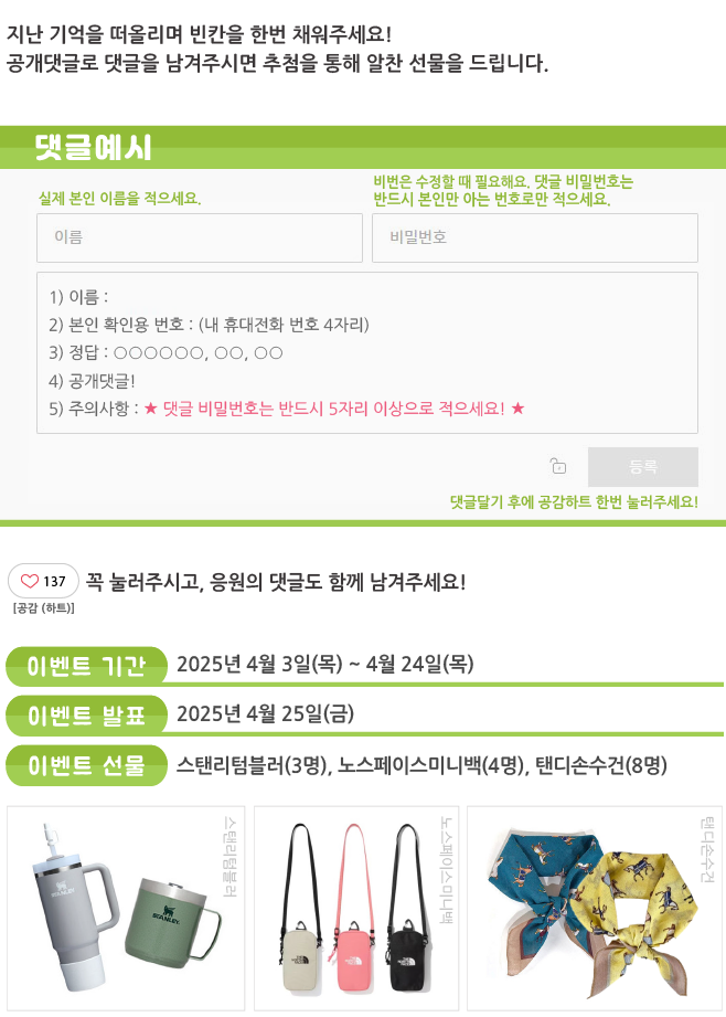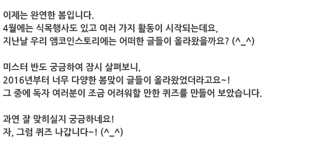 | 봄날의 추억! 이벤트 결과 발표 _ 웹진 [앰코인스토리] (0) | 2025.04.25 |