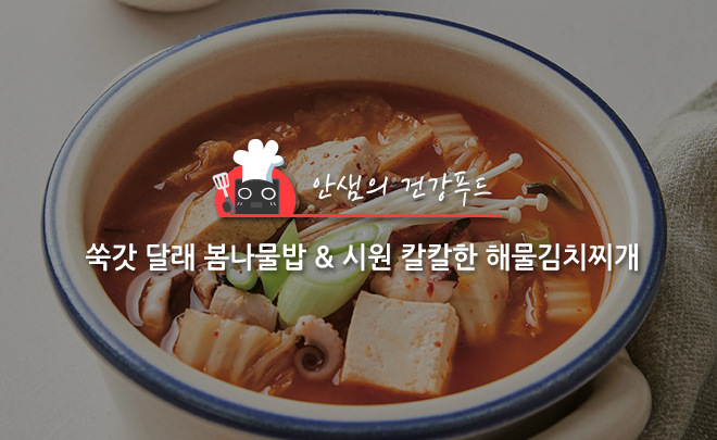 쑥갓 달래 봄나물밥 & 시원 칼칼한 해물김치찌개