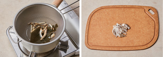 ② 주꾸미는 내장과 입, 눈을 제거하고 4cm 크기로 잘라 준비한다.