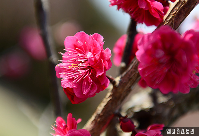 잎을 틔우기 앞서 꽃부터 보여주는 성질 급한 매화나무. 매년 3월경이면 보해매실농원에는 다양한 색상의 매화가 가득합니다. 사군자의 하나이기도 한 매화는 옛 성현들의 사랑을 독차지할 정도로 매력이 넘치는 꽃이지요.