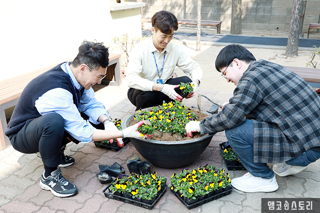 4월 5일 식목일을 맞아 앰코코리아 전 사업장에서 식목행사가 진행됐습니다. 사원들은 화분 분갈이 작업과 출근로 초화를 식재하며 회사의 환경미화에 기여했습니다. 서로 협력하며 나무와 꽃을 심는 과정을 통해 사원들은 더욱 긍정적인 에너지를 충전하는 뜻깊은 시간을 보냈습니다.