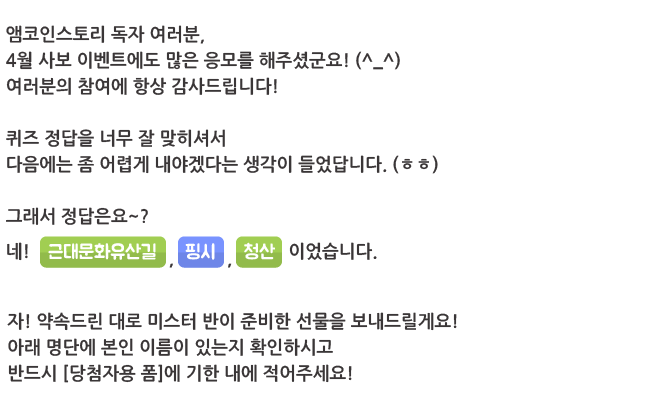 | 봄날의 추억 이벤트 _ 웹진 [앰코인스토리] (705) | 2025.04.03 |