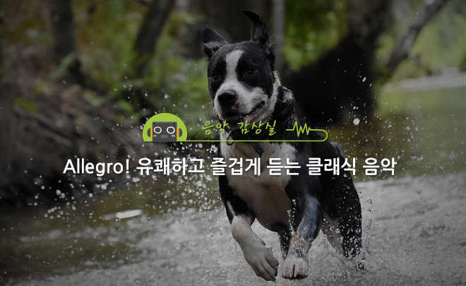 Allegro는 곡을 빠르게 연주하도록 지시해주는 단어입니다. 어원을 보면 이탈리아어로 ‘빠르다’를 뜻합니다. 음악의 맥박(메트로놈)을 보면, 약 120~168BPM의 속도로 치타가 달리는 속도라고 이해하면 될 것 같습니다. Allegro의 지시가 있는 곡들을 들어보면 유쾌하고 즐거운 기분을 느낄 수 있습니다. 묶인 목줄을 벗어나 신나게 달리는 강아지의 모습을 연상해 보면 Allegro의 속도를 상상해볼 수 있습니다.