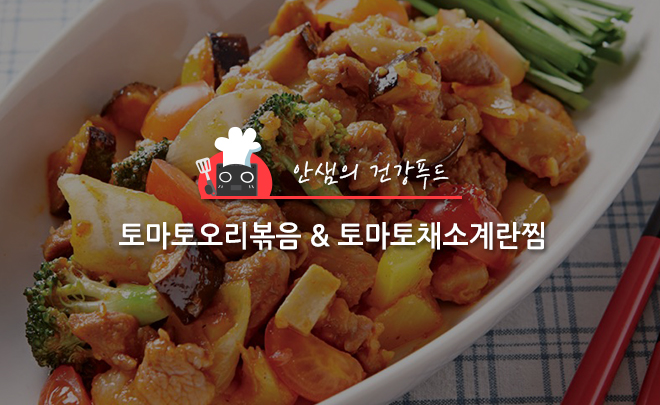 오늘 요리의 저염 비법을 보면, 토마토채소계란찜은 소금 대신 파마산치즈로 간을 해 나트륨을 줄였고, 토마토오리볶음은 고추장을 적게 사용하고 토마토를 사용한 소스를 곁들여 나트륨 함량을 낮추고 토마토와 풋고추, 양파로 맛을 내 나트륨 섭취를 줄였습니다.