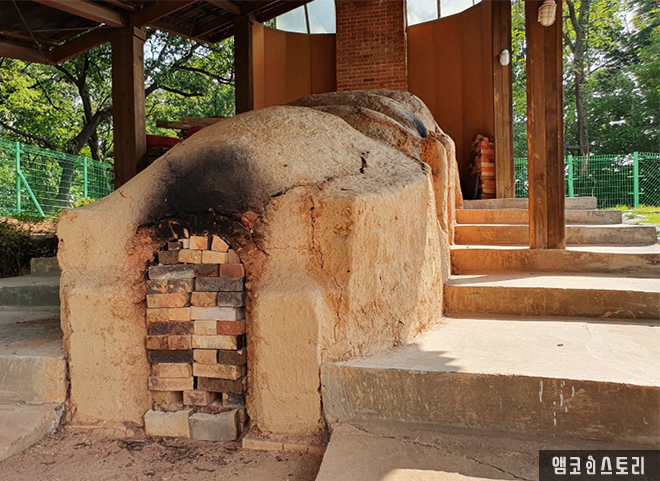 전시관을 나오면, 한편에 숨은 듯 자리한 전통 가마터를 만날 수 있어요. 관람객들이 쉽게 접하기 힘든 옛 가마를 재현해둔 공간으로, 실제 흙으로 쌓아 올린 가마의 모습은 앞서 만난 고려 시대 도공들의 일터를 떠올리게 합니다. 이 가마는 단국대학교 예술대학장을 지낸 이부용 교수가 2012년에 기증한 것으로, 서곶 지역의 옹기 약 200여 점과 함께 인천 지역 옹기 제작 특징과 역사를 한눈에 살펴볼 수 있게 전시되어 있습니다.