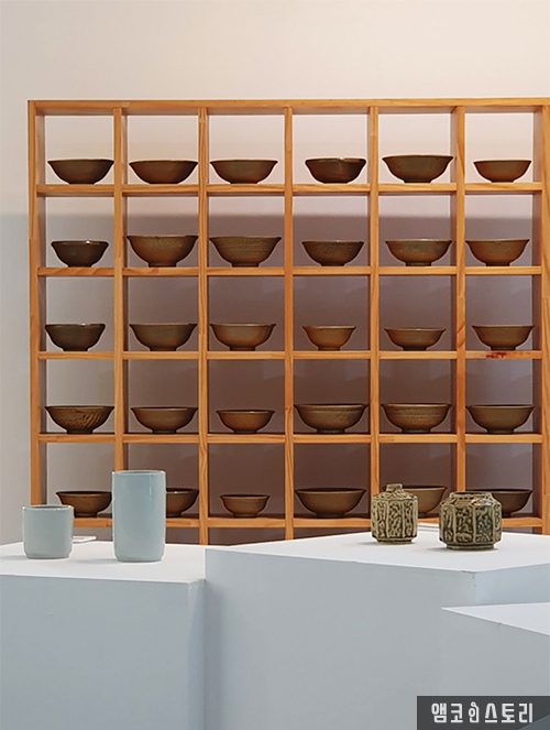 박물관 안으로 들어서면 가장 먼저 마주하는 곳은 ‘역사전시실’입니다. 고려청자의 옥빛을 닮은 타일 모자이크가 곡선형 벽면을 감싸 신비로운 분위기를 자아 내는 입구, 살짝 굽은 통로를 지나 전시장 안으로 들어가면, 고요한 공기 속에 놓인 녹청자 유물들이 시선을 사로잡습니다. 고려 중기부터 조선 초기에 걸쳐 제작된 다양한 녹청자들이 시대별로 정리되어 있는데요, 비취빛 청자와 달리 녹색과 청색이 오묘하게 섞인 녹청자의 색감은 마냥 신비롭기만 합니다.