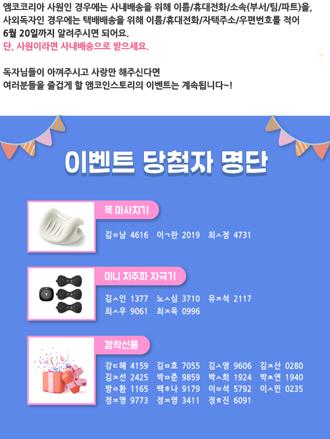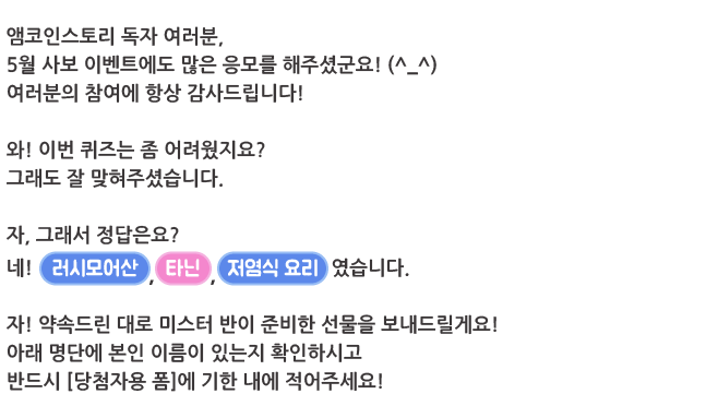 | 봄날의 추억! 이벤트 결과 발표 _ 웹진 [앰코인스토리] (0) | 2025.04.25 |