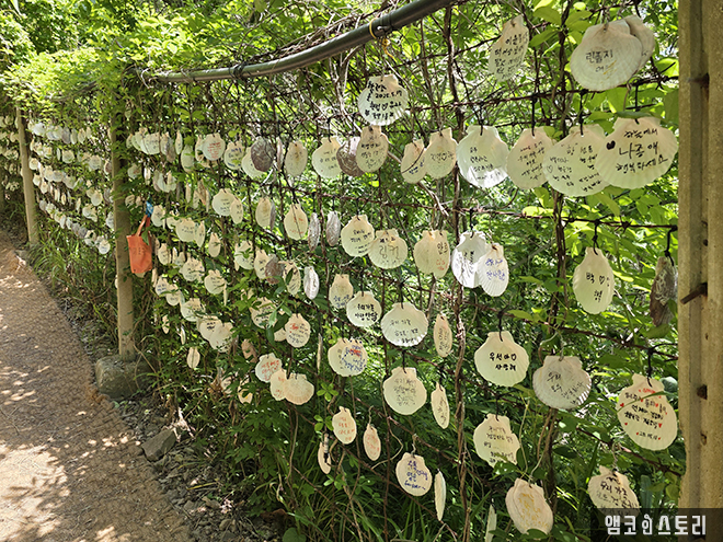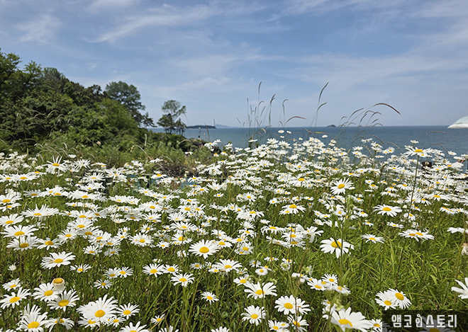 변산해수욕장 송포항에서 출발하는 마실길 2코스에 접어들면 사람들의 간절함이 가득 적힌 조개 껍데기가 반겨주고, 한참을 걷다 보면 전망대가 반겨준다. 전망대에서 바다를 바라보며 한숨 쉬고 걷다 보면, 수많은 데이지꽃들이 바람에 춤추듯 우리를 반겨주는데, 너무도 황홀하다. 사랑하는 사람과 함께여서.