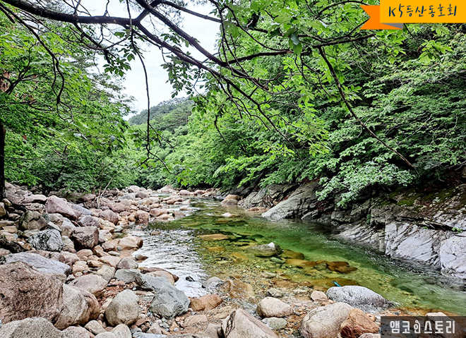 여름철 계곡 트레킹의 묘미는 아무래도 이런 맑고 시원한 계곡에서의 물놀이가 아닌가 싶습니다. 더운 날씨와 밀림을 걷는 듯한 엄청난 습도, 땀과 더위를 식힐 수 있는 청정 1급수 계곡은 여름철 계곡 트레킹을 즐기는 사람들만의 특권이겠지요. 이곳에서 각자가 준비한 간식과 음료로 담소도 나누고 물놀이도 잠시 즐겨봅니다. 여름 산행 또는 트레킹이 주는 낭만을 오늘 제대로 경험하고 갑니다.