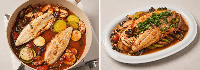 고등어 라따뚜이 파스타는 프랑스 남부의 전통 채소 스튜인 라따뚜이, 그리고 이탈리아의 파스타를 결합한 퓨전 고등어 요리입니다. 고등어는 오메가3 지방산이 풍부하며, 라따뚜이의 다양한 채소와 어우러져 풍부한 맛을 제공합니다. 파스타는 이탈리아를 대표하는 면 요리고, 라따뚜이는 프랑스 프로방스 지역의 전통 요리로, 가지와 호박, 토마토 등을 사용해 만듭니다.