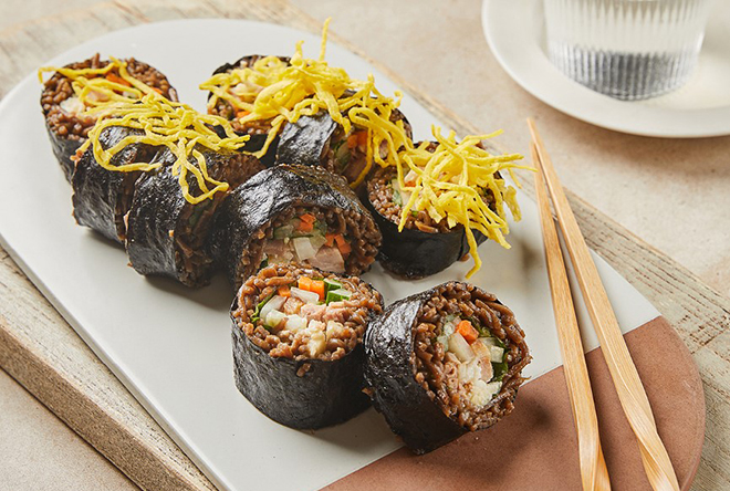 두부샐러드 메밀김밥은 전통적인 김밥에 두부와 신선한 샐러드 재료를 넣고, 밥 대신 메밀로 만든 면이나 밥을 활용하여 만들었습니다. 메밀은 글루텐이 없고 소화가 잘되는 곡물로, 한국에서는 메밀국수 등으로 활용되어 왔습니다. 메밀에 함유된 루틴은 혈관 건강에 도움을 주어 고혈압, 동맥경화 예방을 도와주고, 식이섬유가 풍부해 변비 및 혈당 조절에 도움을 줍니다.
