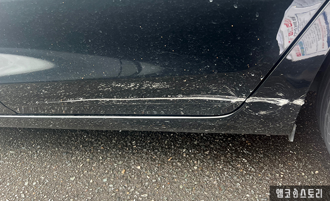 골목이 있던 돌과 차의 폭이 너무 좁아 필자는 창문 밖으로 확인 후 돌아도 괜찮을 것 같다고 했고, 운전하던 친구가 돌던 중 그만 차 표면을 긁히고 말았습니다. 일단 숙소로 돌아와 확인을 해보니 차가 너무 심하게 긁혀 있어 렌트카 업체에 전화부터 합니다.