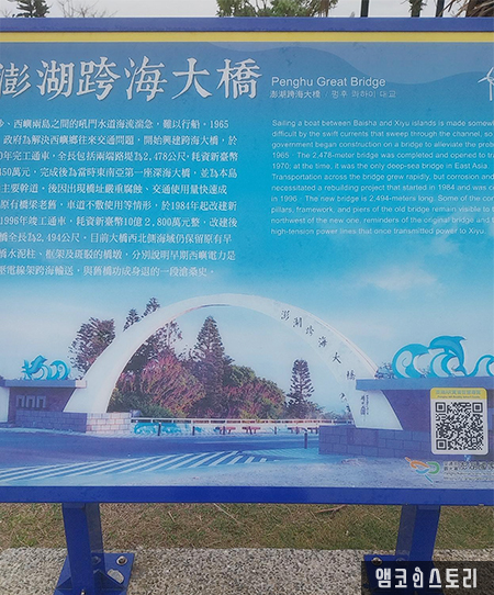 다음은 해상대교(跨海大橋)입니다. 백사향(白沙鄉)과 서우위향(西嶼鄉)을 연결하는 대만 최초의 해상교량이라고 하네요. 대표적인 랜드마크라고 알려져 있어 대교 앞에서 수많은 사람이 사진을 찍기 위해 줄을 서고 있네요.