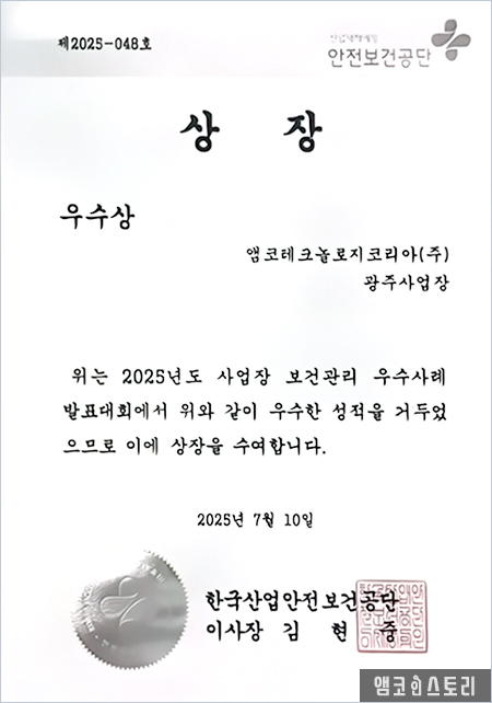 | 앰코코리아, 산업안전보건의 달 기념 산업재해예방 유공 표창 수상 (2) | 2025.07.25 |