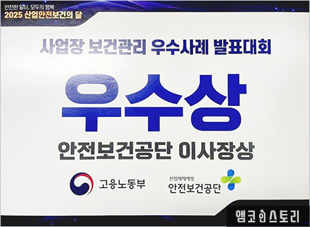 지난 2024년 12월 4일, 근로자 건강증진활동 우수사업장으로 선정됨에 이어, 7월 10일, 앰코코리아는 고용노동부와 한국산업안전보건공단이 공동 주관한 ‘2025년 사업장 보건관리 우수사례 발표대회’에서 우수상을 수상했습니다.