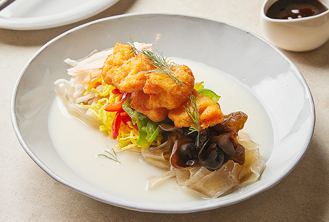 양장피 콩국수는 전통적인 중국 요리인 ‘양장피’와 한국의 ‘콩국수’를 결합해 만든 요리입니다. 양장피는 얇게 썬 다양한 채소와 해산물을 전분으로 만든 얇은 피와 함께 무쳐 먹는 요리로, 식감과 색감이 풍부합니다. 양장피 콩국수는 여기에 한국의 여름 별미인 콩국수의 콩국을 넣어 콩의 고소한 맛과 양장피의 식감을 동시에 즐길 수 있습니다.