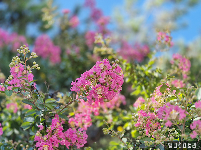 극심한 폭염 가운데에서도 배롱나무 꽃의 맵시와 석양이 만들어주는 아름다움 작품들 덕분에 출퇴근의 발걸음이 가볍습니다.