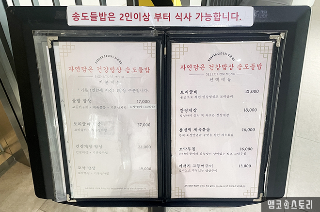 송도 아트포레 건물 2층에 있는 <송도들밥>은 겉에서 보기엔 깔끔하고 조용한 외관이 눈에 띄는데요, 안으로 들어서면 꽤 넓습니다. 전체적으로 정돈된 인테리어에 편안한 좌석, 그리고 따뜻한 분위기가 참 좋은데요, 가족 외식은 물론이고 조용한 점심식사나 혼밥 장소로도 강력히 추천하고 싶은 곳입니다.