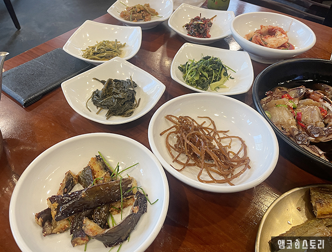 기본으로 제공되는 반찬도 무려 여덟에서 아홉 가지나 나오는데요, 그저 곁들이는 수준이 아니라 하나하나 정성스럽게 만든 게 느껴질 만큼, 간도 딱 맞고 맛이 좋습니다. 김치, 나물, 조림류 등 다양한 반찬이 깔끔하게 차려져 있어서 마치 한상 가득 차린 집밥 같은 따뜻함이 느껴졌습니다.