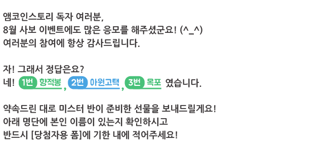 | 앰코인스토리와 함께 떠나는 팔도강산 퀴즈! _ 웹진 [앰코인스토리] (750) | 2025.08.04 |