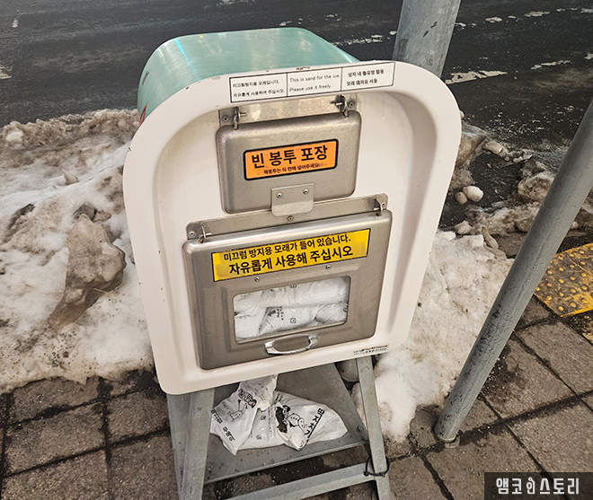 앱을 활용하면 이러한 형태로 번역이 됩니다. 사진은 미끄럼 방지용 모래라는데요, 길가 곳곳에 있는 것이 신기해 사진으로 한번 찍어보았습니다.