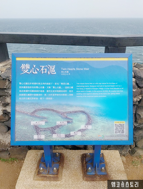 치메이섬의 대표적인 랜드마크는 쌍심석(雙心石滬, Twin Hearts Stone Weir)으로, 두 개의 하트 모양 형태를 갖고 있습니다. 아마도 SNS에서도 많이 보셨을 것 같아요. 원래는 조수 간만의 차를 이용해 물고기를 잡는 전통 어망 구조물입니다. 치메이 등대는 남쪽 끝에 있고, 주변 절벽과 바다 풍경이 장관을 이룹니다. 등대 주변에는 산책로가 조성되어 있어서 섬의 남쪽 해안을 따라 걷기에도 좋습니다.